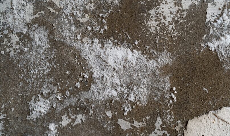 Dépôt blanchâtre au bas des murs intérieurs : c’est la plupart du temps du sel minéral, indice de la présence de salpêtre.